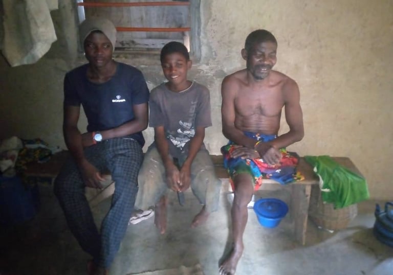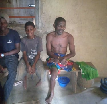 Durante una visita a la casa de los niños, encontramos al padre de Abraham gravemente enfermo, postrado en su cama sin nadie que lo cuidara. La falta de recursos había impedido que recibiera atención médica oportuna, una realidad que enfrentan muchas familias en África.